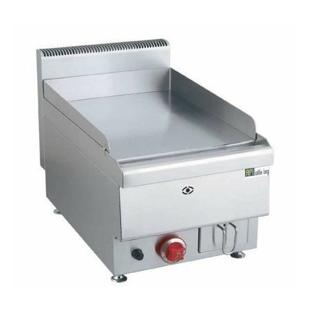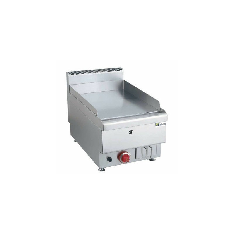 -Plaque à snacker gaz en inox avec tiroir de récupération des graisses amovible et une zone de chauffe.
