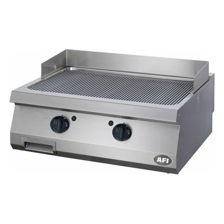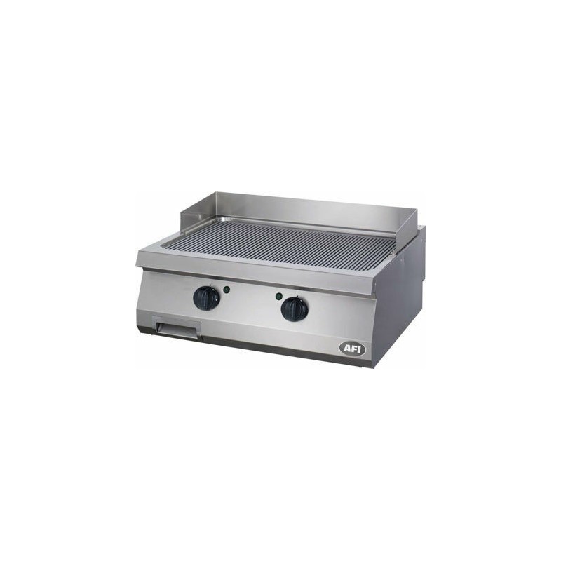 - Grill électrique à poser avec une plaque de cuisson nervurée en acier carbone avec finition satinée. Ce grill est constitué d’un tiroir de récupération du jus de cuisson d’une capacité de 1,5 litre, d’un pare-éclaboussure amovible et lavable en lave-vaisselle et de résistances spécialement étudiées et adaptées pour transmettre rapidement le maximum de chaleur vers la surface de cuisson. La conception de ce grill permet une restitution homogène de la chaleur sur toute la surface de cuisson. Chaque zone de cuisson est contrôlée indépendamment par un thermostat (de 50°C à 300°C).