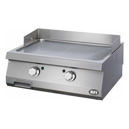 - Grill électrique à poser avec une plaque de cuisson lisse en chrome d’une épaisseur de 15 mm en finition satinée. Ce grill est constitué d’un tiroir de récupération du jus de cuisson d’une capacité de 1,5 litre, d’un pare-éclaboussure amovible et lavable en lave-vaisselle et de résistances spécialement étudiées et adaptées pour transmettre rapidement le maximum de chaleur vers la surface de cuisson. La conception de ce grill permet une restitution homogène de la chaleur sur toute la surface de cuisson. Chaque zone de cuisson est contrôlée indépendamment par un thermostat (de 50°C à 300°C).
