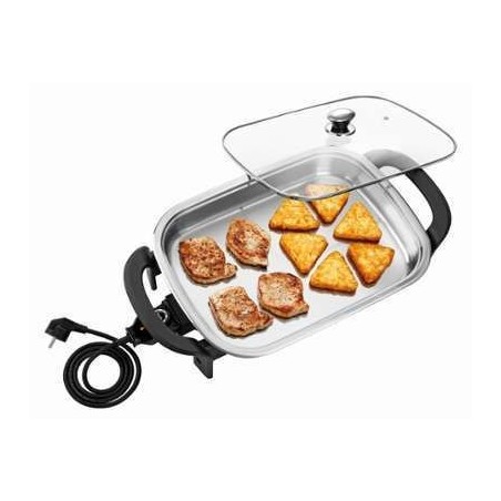 Cette poêle multifonction est pratique et facile d'entretien.La poêle multifonction de 40x30 est idéal pour faire cuir des aliments type paëlla, ratatouille ou autre en grande quantité.Grâce à son couvercle avec poignée, la poêle multifonction vous assuera une cuisson parfaite.Cette poêle électrique multifonction ne convient pas à un usage professionnel continu.