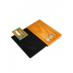Ce porte addition est d'un coté avec un socle en bois et l'autre une couverture en cuir écologique. La fermeture est avec un élastique.