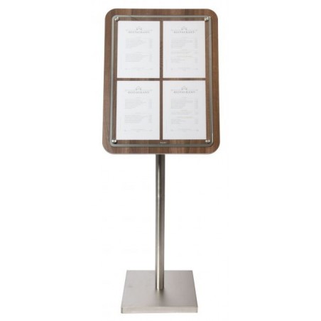 Porte menu GLASS STAR 4xA4 noyer sur pied: