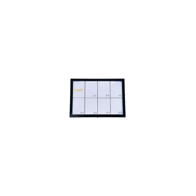Securit® Porte-menu lumineux en acier martelé noir - présente 8 pages A4 - LED blanches