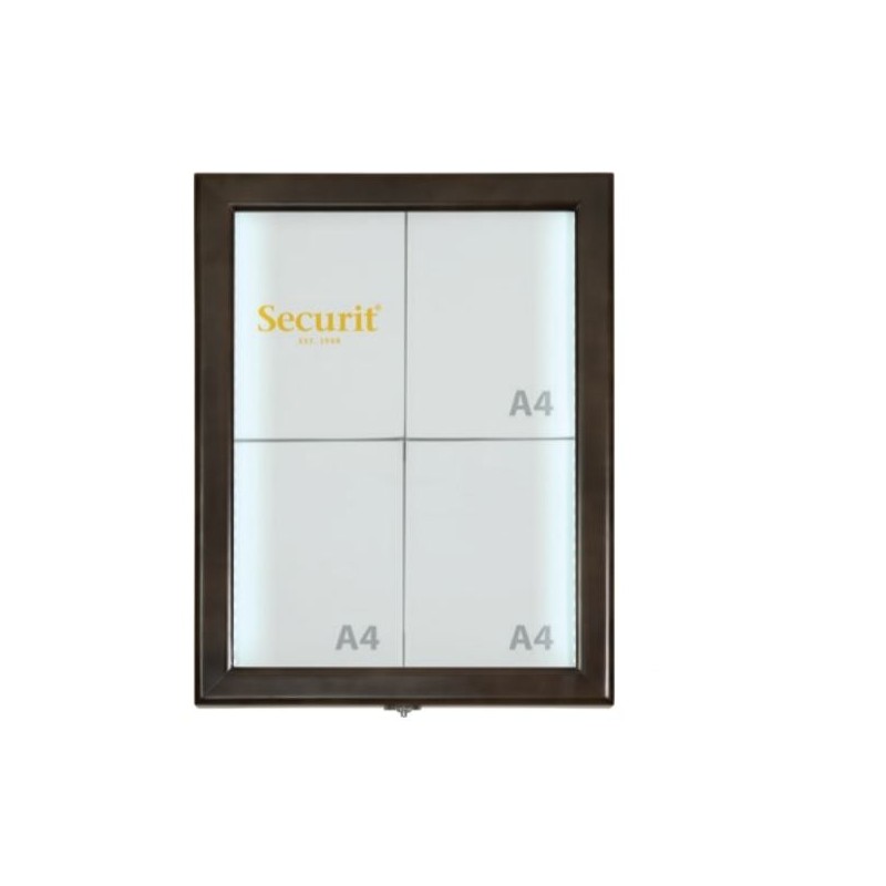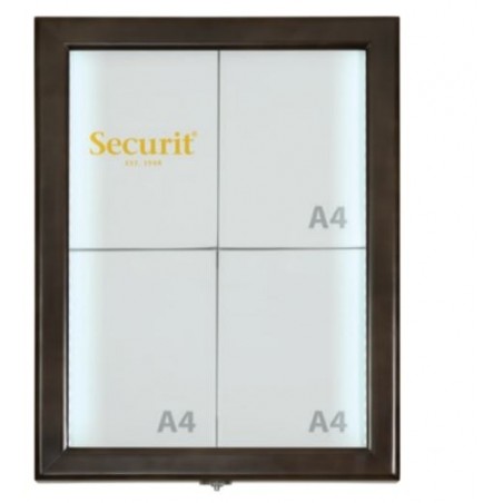 Securit® Présentoir LED Classic - Marron foncé - présente 4 pages A4 - LED blanches