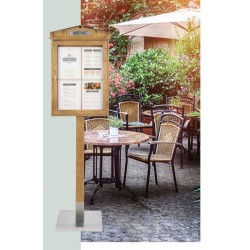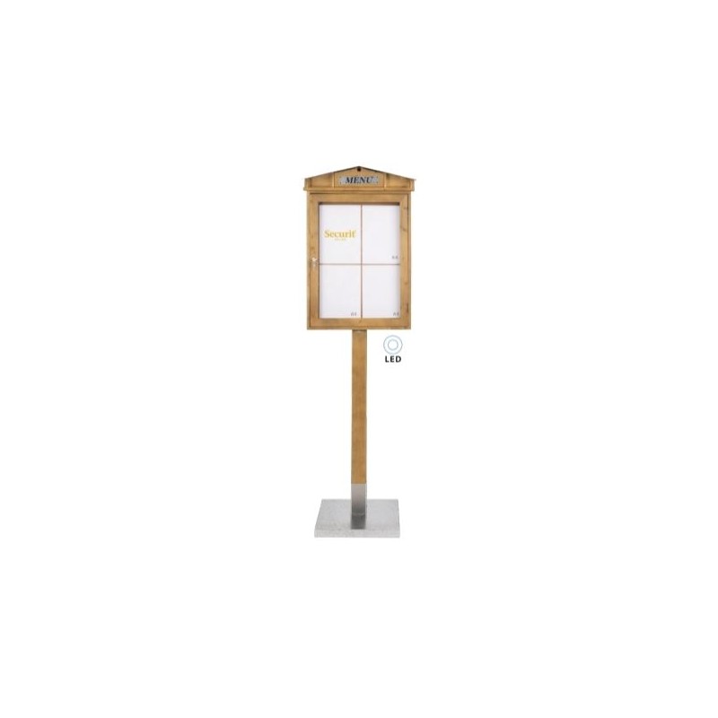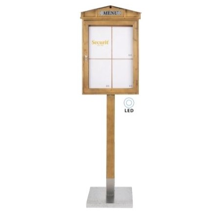 Securit® Présentoir LED Rustic (Set complet avec pied + socle) - Acajou finition laquée - présente 4 pages A4