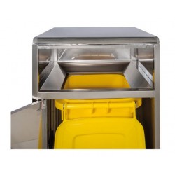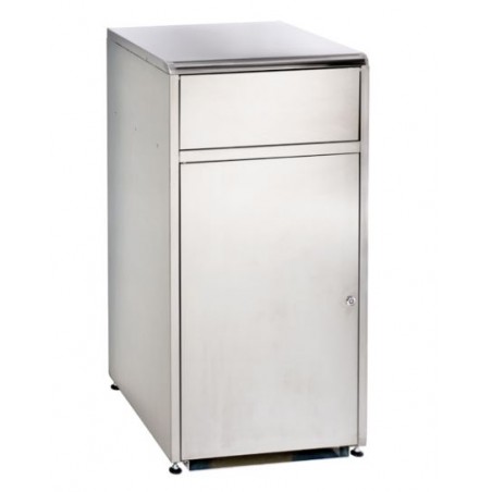 - Inox brossé- Ouverture avec clapet basculant- Porte intérieure avec fermeture à clé triangulaire- Support plateau en option- Pieds réglables en hauteur- Conçu pour recevoir un conteneur de 120 litres- Dimensions: L 68 x P 59 x H 126 cm- Poids: 20 Kg