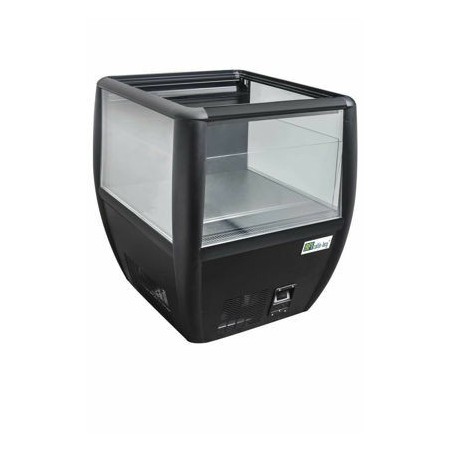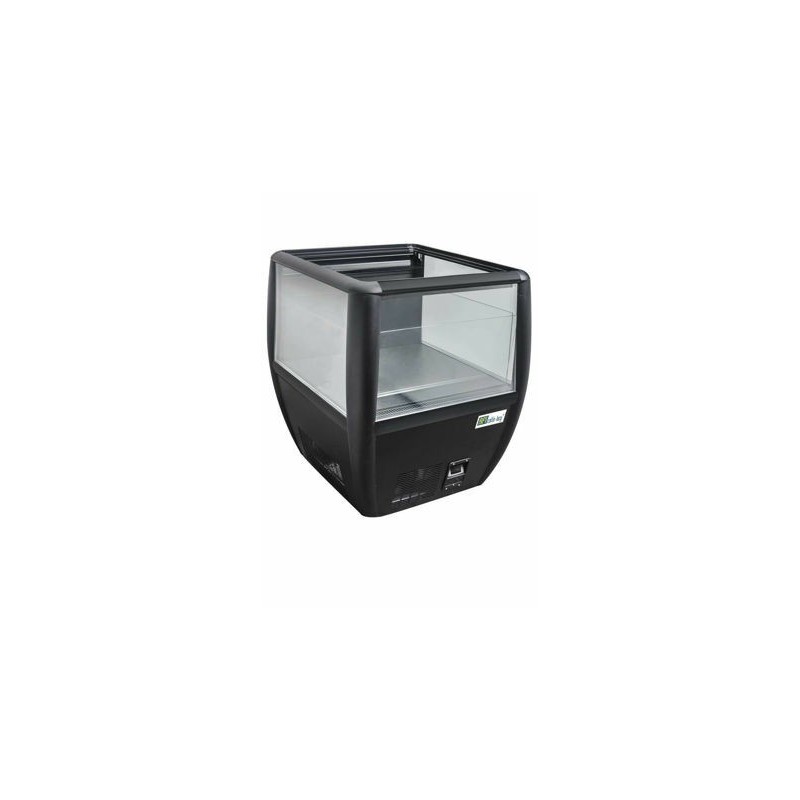 -Îlot réfrigéré. Composé de 4 pieds réglables, 3 faces vitrées, d’un produit compact faible consommation d’énergie et d’un système d'évaporation des eaux de dégivrage par gaz chaud.