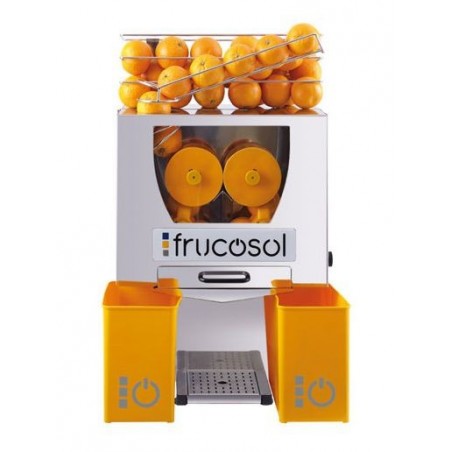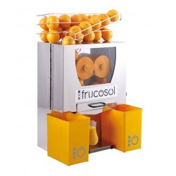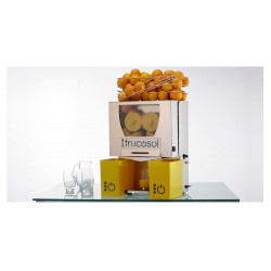 Le presse-agrumes professionnel presse 20 à 25 fruits par minute avec une capacité de 6 à 7 fruits à l'entrée de la machine. Un panier de stockage est situé en haut du presse-agrumes avec une contenance de 4 kg de fruits. Les fruits présentés dans le presse-agrumes professionnel ne doivent pas excéder un diamètre de 85 mm.