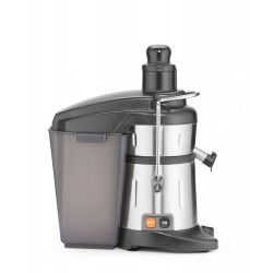 Pour faire du jus de fruits durs et mous ou de légumes. Avec un grand récipient pour la pulpe de 7 litres. Très puissant, peut extraire jusqu'à 120 kg de jus par heure. Boîtier, bol, tamis et disque à râper en acier inoxydable. Goulotte et poussoir fait en ABS, récipient à pulpe et couvercle fait en polypropylène. Vitesse de rotation: 3000 tr/min. Peut être utilisé en toute sécurité, l'appareil fonctionne seulement quand le couvercle et le dispositif de sécurité sont verrouillés. Ne convient pas pour la glace ou des fruits/légumes congelés.