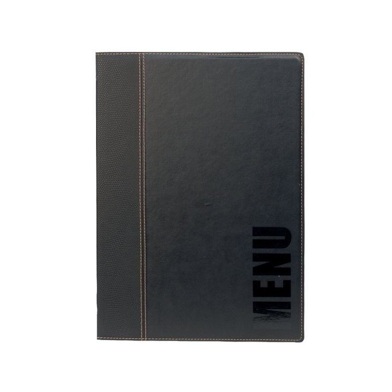 Protège menu noir Simili-cuir bi-matière A4: