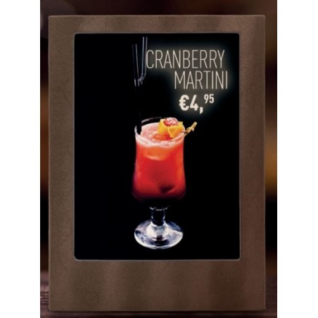 Securit® LED Protège-menu, Technologie rétro-éclairage Led blanc - support simili cuir élégant - présente 1 feuille ou 1 insert transparent format A4