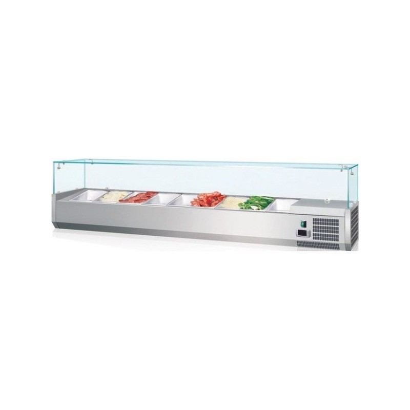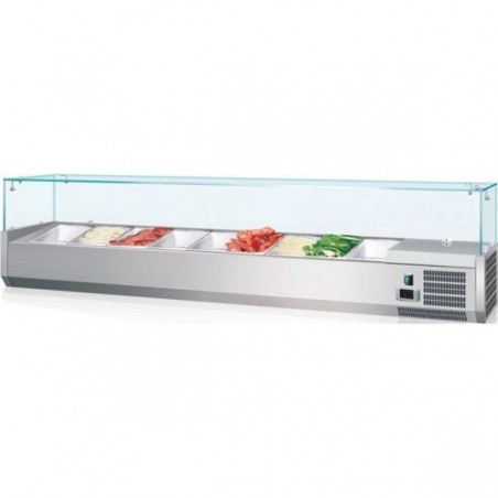 Ce présentoir réfrigéré est proposé avec 10 X GN 1/4 ( les bacs ne sont pas compris). Pour une hygiène parfaite , la saladette est équipée d'une vitre en verre comme pare-haleine, d'un évaporateur des eaux de dégivrage et d'un système de refroidissement statique.