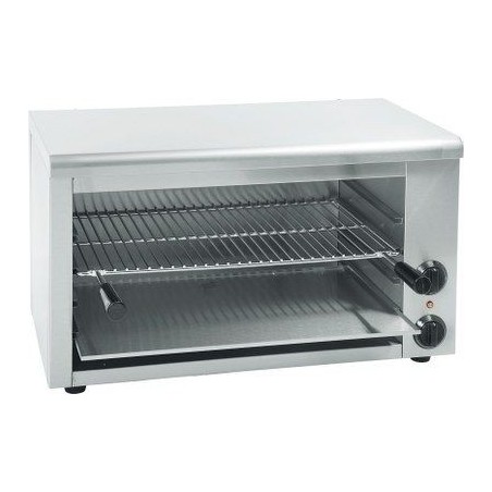 La salamandre électrique professionnelle est en acier inoxydable.Elle est munie d'un thermostat réglable en continu de 50°C à 250°C.La tête mobile permet de positionner la hauteur du grill.Ce four / grill professionnel sera idéal pour faire griller vos croque-monsieurs,gratins ect...avec une cuisson rapide.