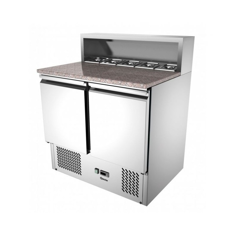 Cette saladette est composée de 2 portes d'une contenance de 260 litres.La température de cette table à pizza est de 0°C à 10°C.Son froid ventilé, sa commande électronique et son évaporateur des eaux de dégivrage, vous permettrons de réaliser grâce à cette table à pizza professionnel d'excellente pizzas.
