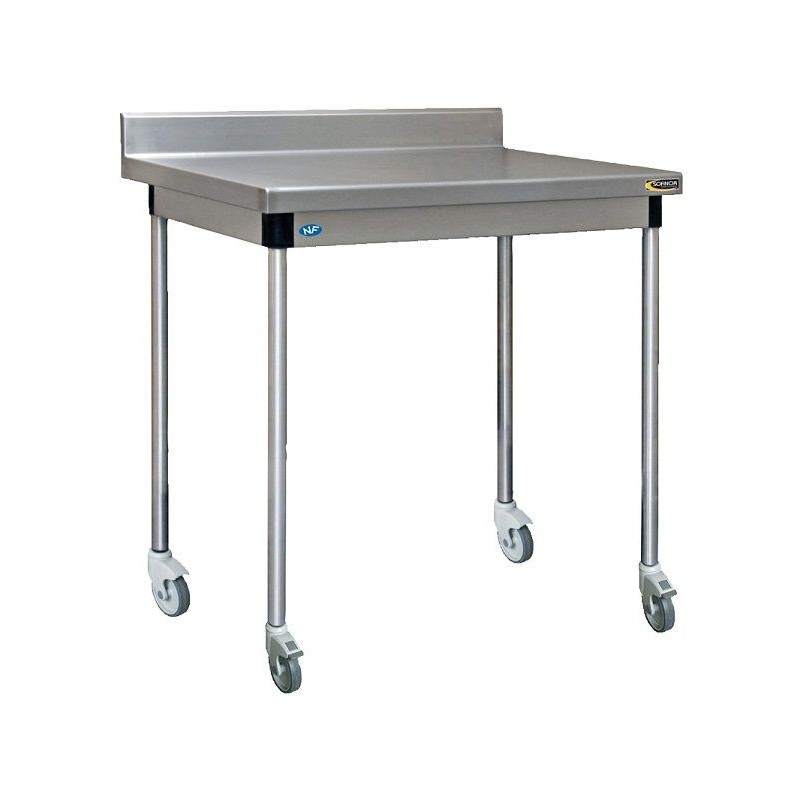 Table inox à roulettes à dosseret profondeur 700 mm :