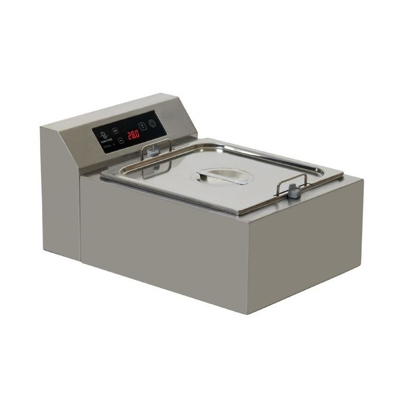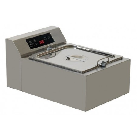 La trempeuse à chocolat compacte en acier inoxydable permet la fonte du chocolat par un système d'eau chaude. Simple d'utilisation, elle est l'outil indispensable au travail artisanal des chocolatiers et pâtissiers.