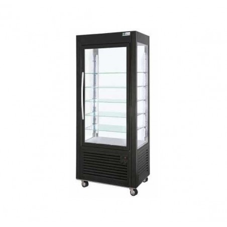 Cette vitrine réfrigérée professionnelle mettent vos gâteaux, tartes, cocktails et boissons fraiches en valeur. Equipée de 5 plateaux en verre réglables avec une porte à fermeture magnétique et sur roulettes, cette vitrine réfrigérée peut être utilisée derrière un comptoir ou en libre service.