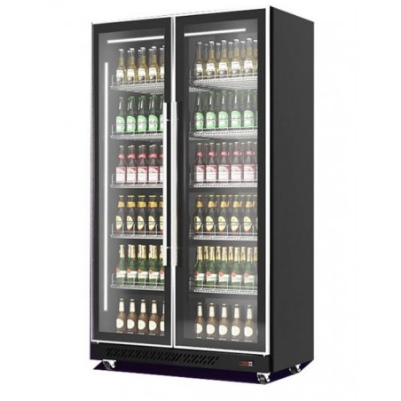La vitrine réfrigérée de la marque Combisteel a des finitions de couleur noire. Toutes ses quatre portes sont vitrées avec une ouverture battante. Vous pouvez donc l’ouvrir comme vous en avez l’habitude pour une armoire ou une porte classique. La largeur de cet appareil est de 1100 mm, la hauteur est de 1980 mm et la profondeur de 600 mm.