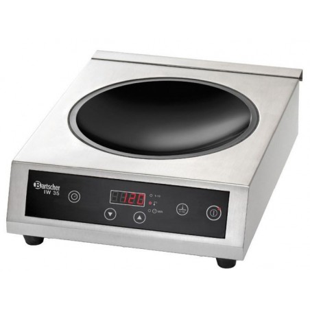 Ce wok à induction IW 35 dispose d'une surface de cuisson concave en verre, Ø 260 mm, d'un panneau de contrôle tactile avec affichage digital et une minuterie. 10 niveaux de réglage de température. Plage de température : 60 à 240 °C. Puissance : 3,5 kW / 230 V. Protection électronique anti-surchauffe. Dimensions : L 340 x P 440 x H 125 mm